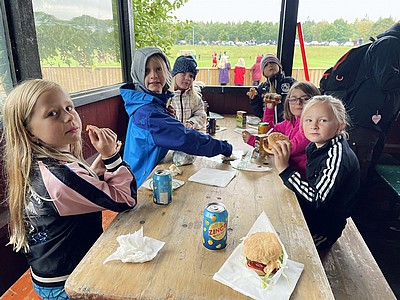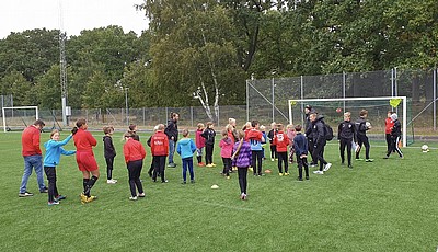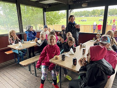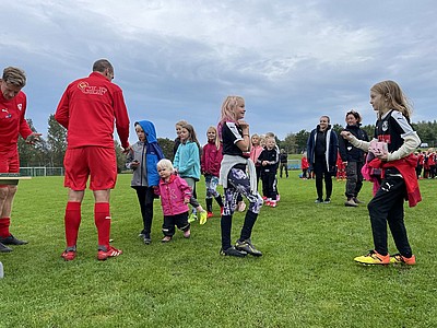 Vi hade en riktigt fin fotbollsfest i söndags - hoppas att barnen också tyckte det! Det blev en härlig blandning av fotbollslek, bus, teknikövningar, hamburgare, möten mellan fotbollsspelare över åldersgränser, kullerbyttor och hejarramsor till a-lagsmatch, barn som strålade ivrigt medan molnen regnade mjukt. Det var otroligt kul att så många kom!
