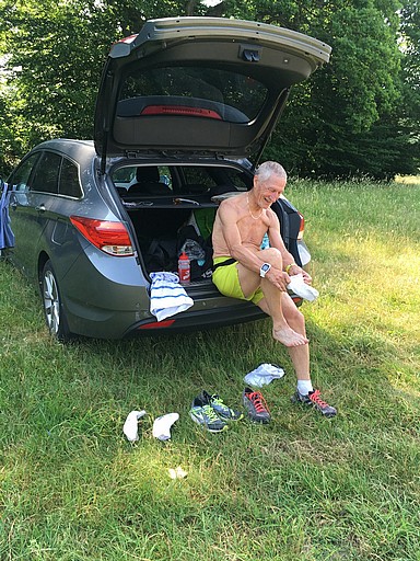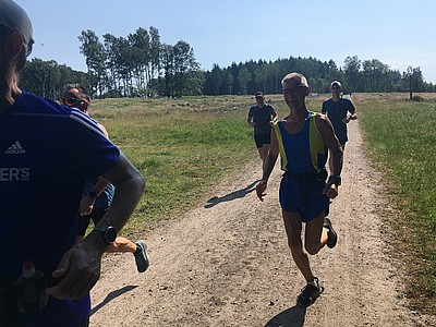 En lyckad träning med c:a 20 löpare blandat från många olika föreningar, startade med 26 grader på temperaturen kl 09.00. Start varje heltimme med sista starten kl 14.00, 3 löpare var då på startlinjen och då var kvicksilvret uppe på 34 grader. Men, det var ju i skuggan - vem ville vara där? Grymma prestationer att köra på så här i värmen - varv efter varv.