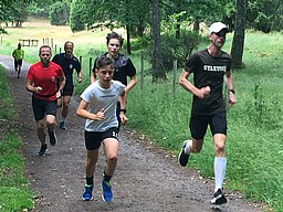 Uppvärmning i skogen. Intervaller på slingan - 2x800, 2x600, 2x400, 2x200